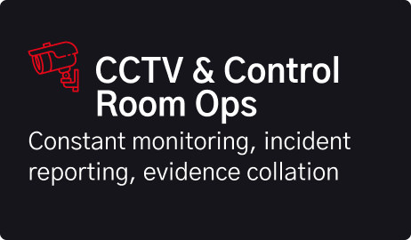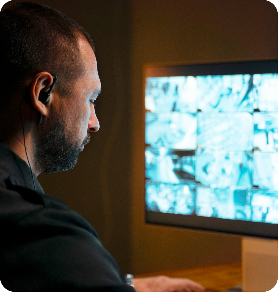 Our trained control room operators coordinate on-site teams, monitor live feeds, and respond to real-time events.